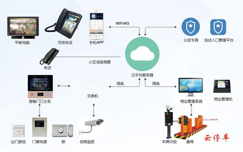 以智能門禁、智能停車為入口,以APP開門為工具,以云后臺為中心,以社區運營為平臺集成對講門禁、監控、智能家居、數字物業、O2O等為居民提供增值服務。并可以拓展辦公樓宇、訪客系統、居家養老院綜合解決方案。
