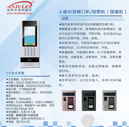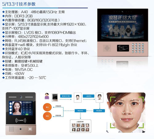 5/7/13.3寸人臉識別:極致的刷臉體驗,克服光照敏感,準確率99.9%。
