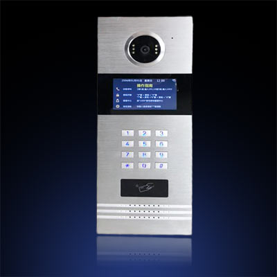 幸福苑小區門口機選用的石家莊安居樂數字樓宇對講系列產品:4.3寸數字樓宇對講主機AJL-OS02。4.3寸操作屏,操作更方便、更清晰。高清攝像頭,6顆高效LED燈補光,夜視更清晰。背光按鍵,鋁制面板,時尚精致大氣。多種開鎖方式,支持室內一鍵開鎖、密碼開鎖、刷卡開鎖等。
