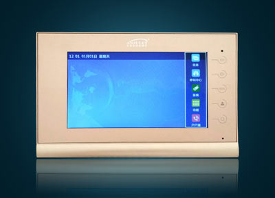 幸福苑小區選用的室內機是安居樂數字樓宇對講系統產品7寸彩色可視分機AJL-IS03。數字系統,智能管理,高效便捷,具有可視對講、視頻監控、多種開鎖方式、智能家居等功能。