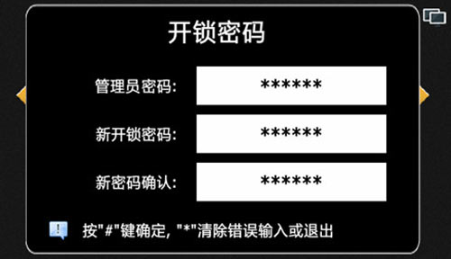 1) 設置公共開鎖密碼和公共挾持開鎖密碼,輸入正確的管理員密碼,可設置新的公共開鎖密碼和公共挾持開鎖密碼。注:兩個開鎖密碼關系為反序,且不可相同。系統出廠時默認的公共開鎖密碼是012345,默認挾持開鎖密碼為543210。假如將公共開鎖密碼設置為666666或121121,則公共挾持開鎖密碼與公共開鎖密碼相同,違反設置規則,提示設置失敗。