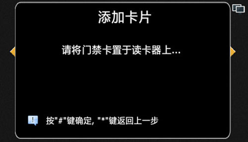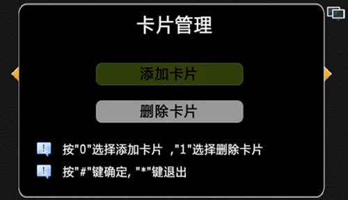 1) 添加住戶IC卡,按“0”可選擇添加卡片功能。如圖4.12.1: