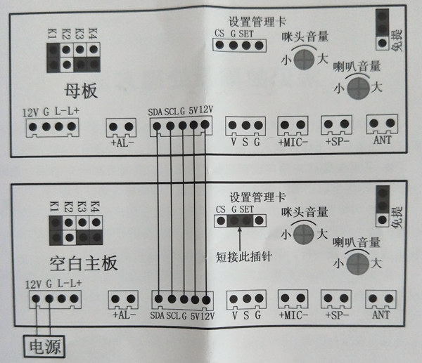 這個功能用于小區中有多臺門口機要求數據相同,這樣可以快速復制而不用每臺主機都得去設置卡和房號等。也可以用于更換主機板時把卡數據復制到新的主機板上,但是要嚴格按照操作步驟操作,否則會清除原來有卡數據的主機板。